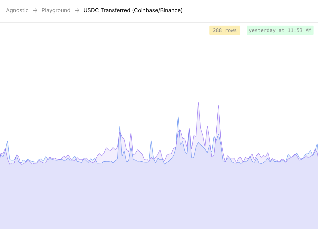 Watch the result from the public chart USDC Transferred (Coinbase/Binance).
